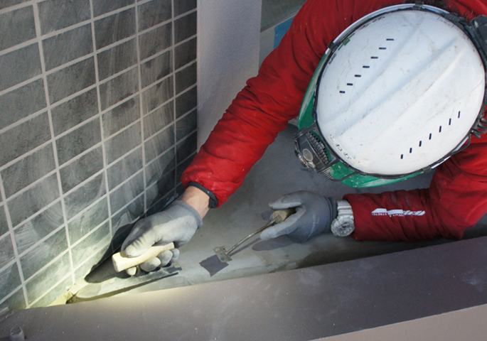 セメントモルタルを使って、建物の壁や床を平らに塗り上げる工事です。特に鉄筋コンクリートの大きなビルやマンションの建設現場(野丁場)で、壁のベース(下地)を作ることが多いです。この作業の後には塗装や壁紙が貼られるため、完成すると見えなくなってしまいますが、数ミリの誤差で平らに仕上げる職人の腕が、建物の美しさを決めます。また珪藻土(けいそうど)などを使った手仕事ならではの温かみのある壁づくりも行います。