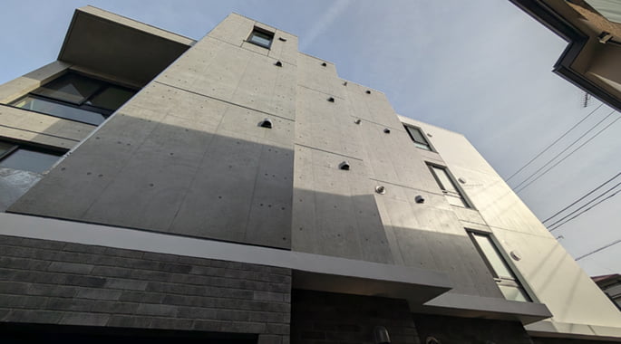 打ちっぱなしのコンクリートの壁を、そのまま美しく仕上げるための工事です。表面をきれいに補修・コーティング(艶あり・艶なし)することで、建物のデザイン性を高めるだけでなく、建物を長持ちさせる(耐久性を確保する)大切な役割も果たします。